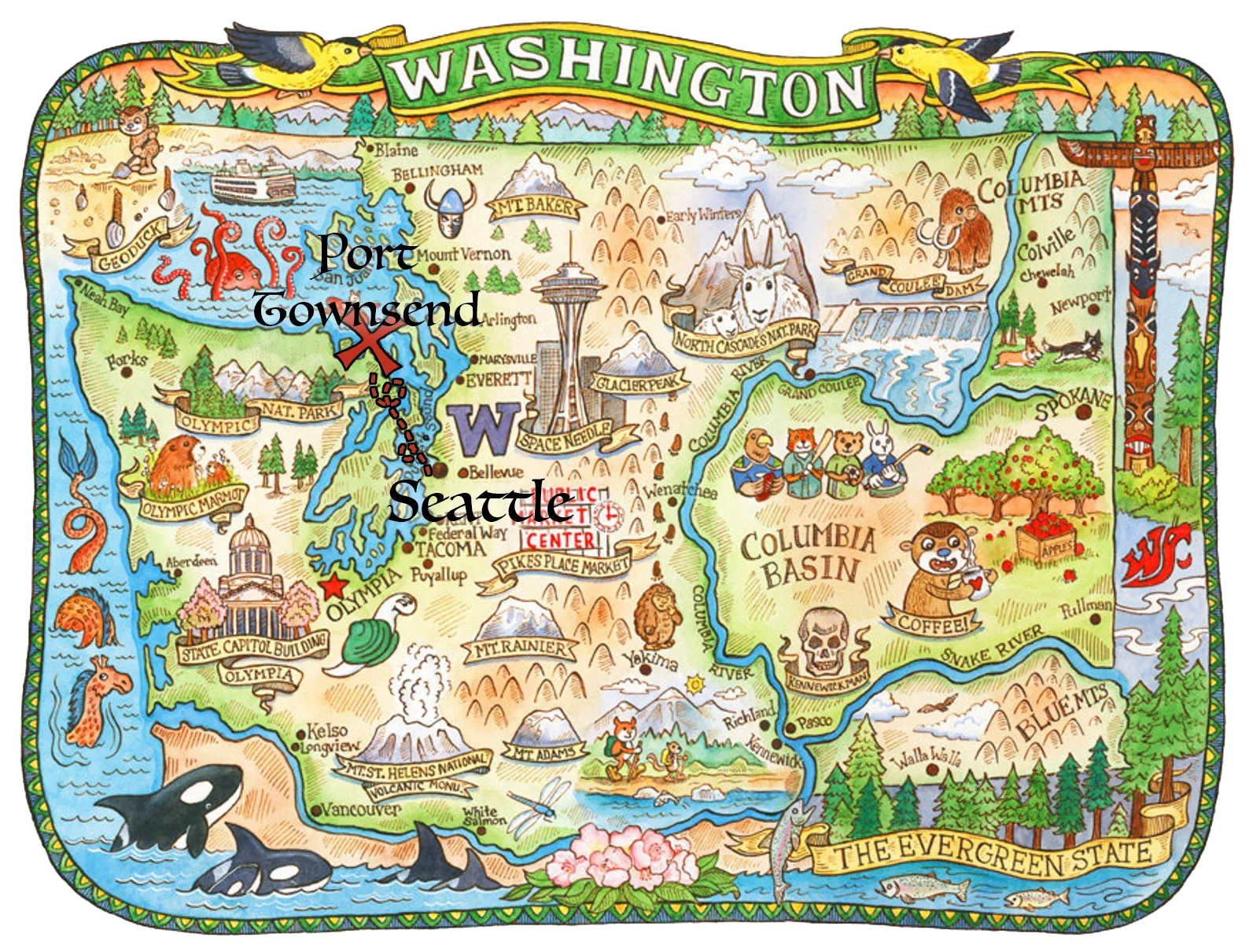 If you're driving from the Seattle area, there is an option to drive onto the car ferry rather than drive the entire way. The ferries are great, but wait times are really unpredictable in the summer. It's common to have to wait one or two hours for a spot due to long car lines. We recommend driving the long way around the Sound on the way out so you won't miss anything, and then consider taking the ferry on your return trip.